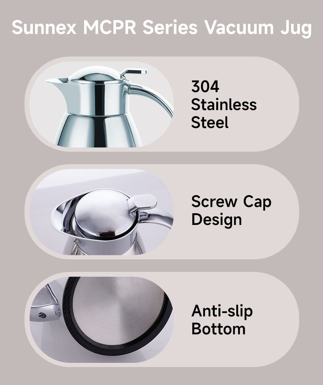 Sunnex 新しい MCPR シリーズ 304 ステンレススチール真空ジャグ - 商業および家庭のニーズに応えるプロフェッショナルなパフォーマンス