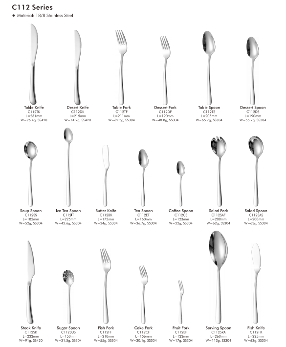 C112 シリーズは、高品質の 18/8 ステンレス鋼から巧みに作られています。